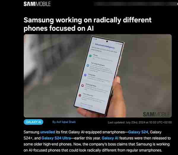 今年早些时候,三星推出了首款搭载galaxy ai的智能手机——galaxy s24系列。随后, galaxy ai功能被普及到一些旧款的高端手机上。据cnmo了解,该公司高层最近声称,三星正在开发以ai为重点的手机,这些手机的外观可能与普通智能手机截然不同。