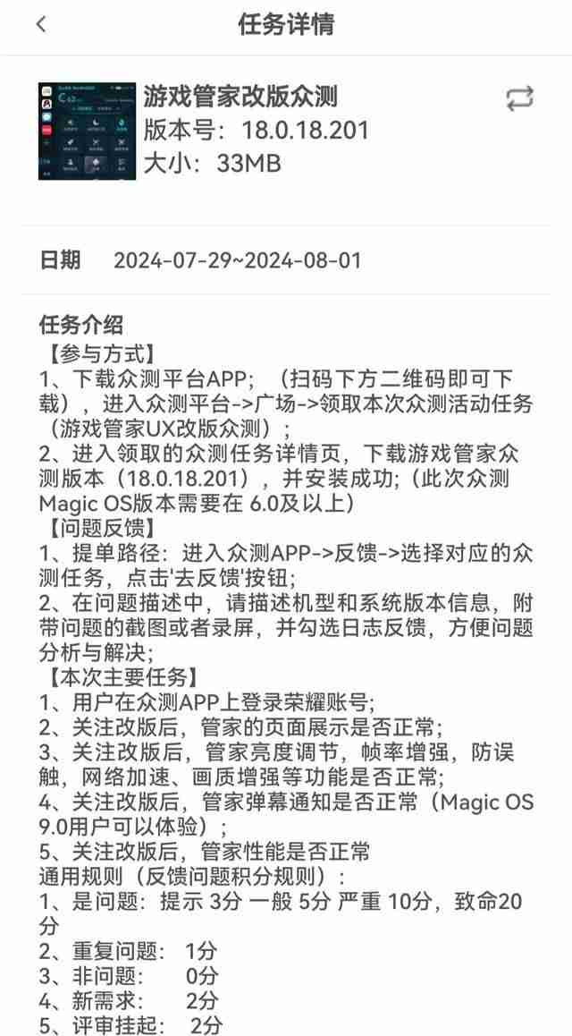 目前荣耀 MagicOS 9.0 尚未开启更新,游戏管家众测版中暂未展示弹幕通知开关,因此无法测试具体应用效果。根据功能描述来看,在进入游戏并开启该功能,其他应用的消息通知将不再采用弹窗形式出现,而是化作视频弹幕形式进行展示。