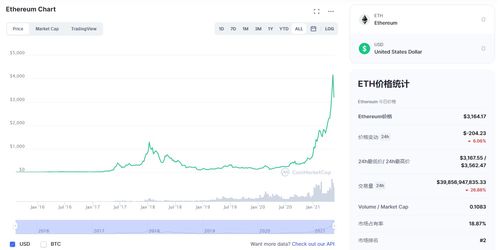 以太坊,作为全球第二大加密货币,自2015年诞生以来,就以其独特的智能合约功能在区块链领域独树一帜。从最初的0.308美元发行价,到如今的价格巅峰4864.02美元,以太坊的涨幅高达15792.27倍。这样的涨幅,简直让人瞠目结舌!