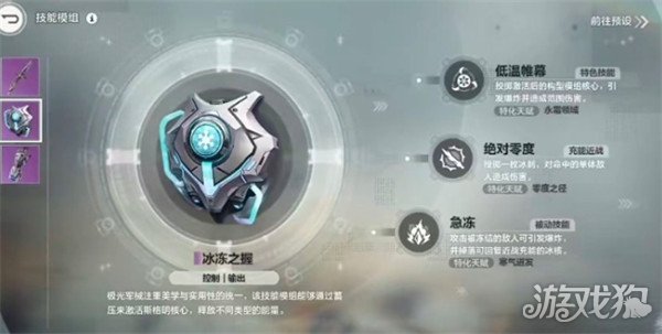 而冰冻之握则隶属于控制和输出装备的模组,该模组一共有三个技能,特色技能低温帷幕,充能进战绝对零度和被动技能急冻。