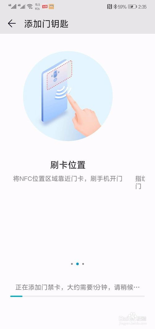 3. 开启NFC功能,将门禁卡放置在手机背面,靠近NFC感应区域。