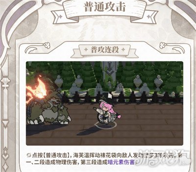 接着可以来说一下战斗技能,所有的技能和甜点都是有关系的。普通攻击是挥动裱花袋,然后连续打三下,前面两段所造成的是物理性伤害,第3段可以直接造成暗属性伤害。如果长按着普通攻击,那还可以直接触发甜点套餐,可以抱着裱花袋直接转圈,可以将奶油喷射出来,所造成的暗伤还是比较严重的。还可以强化重击,就需要积攒两点奶油才可使用,针对前面持续的喷射奶油就可以形成暗杀,这个攻击方法还是很有优势性的。