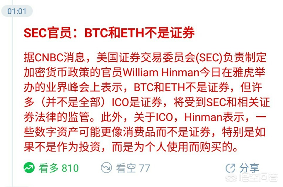 以太坊ETH最大的一个利空已经前两天被消除了。美国的SEC官员宣布比特币和以太坊都不算证券类,这无疑让以太坊吃了一颗定心丸。