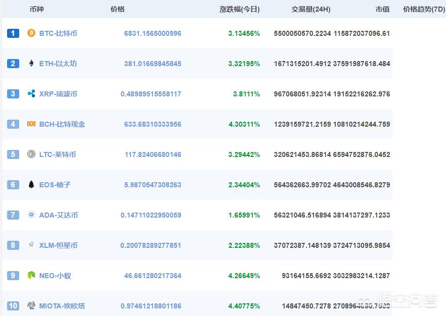 今天是2018年4月7日,比特币价格是6800美金左右,现在比特币市值是1200亿美金左右。下图是最新的全球十大数字货币的市值排名:
