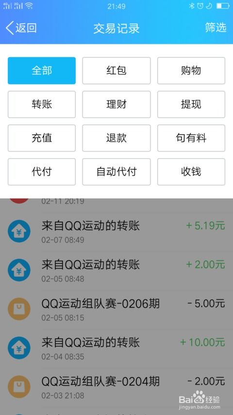类型筛选:点击顶部的类型筛选按钮,选择交易类型进行筛选。