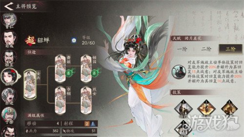 第三个女将角色是甘梅。这个角色的定位是辅助型武将,凭借着极强的治疗能力和减益驱散能力,在团队中的重要度非常之高,而且对于整体团队的战斗续航能够实现更强效果。其主要技能为设计精巧,对于各类战斗环境都有着高强度的作用,尤其对于一些高压的乘坐站来说,能够直接拉长战斗时间,对敌方进行快速挖掘,并完成己方支援。如果能够成功触发克制关系,那么全队攻击力可提升10%,同时将敌方的伤害值再降低20%。