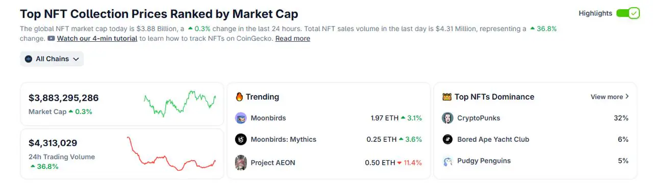 NFT市值飙升加密货币市值在短短一周内从 35 亿美元飙升至 39 亿美元,涨幅达 12%,表明投机情绪正在回归加密货币市场。与此同时,网络迷因币的涨幅更为惊人,总市值从 470 亿美元增至 520 亿美元,同期增长 11%。