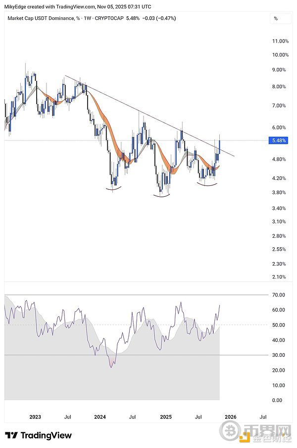 USDT市值占比(%)来源:Mikybull Crypto