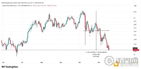 Kobeissi 的数据显示:本应是利好消息的事件,在整个 10 月和 11 月对加密货币市场的表现产生了矛盾的影响。“加密货币价格下跌 25% 的孤立性进一步支持了我们的观点:这是一个基于杠杆和清算的加密货币‘熊市’。”
