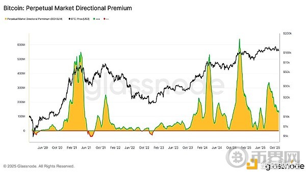 比特币永续合约市场方向性溢价。来源:Glassnode