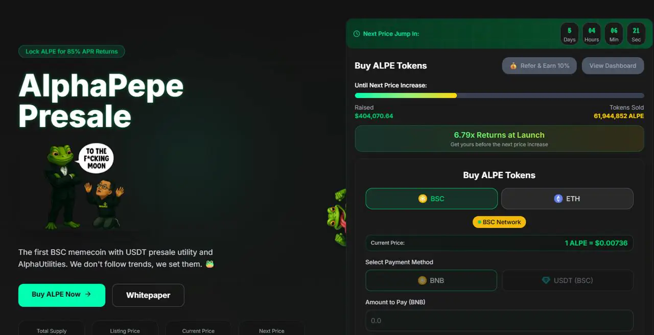 AlphaPEPE 与 Pepe Dollar:两大预售项目,相同的网络迷因起源。探究 PEPE 巨鲸为何纷纷涌入 PEPD,以及哪种代币可能成为 2025 年最佳加密货币预售项目。