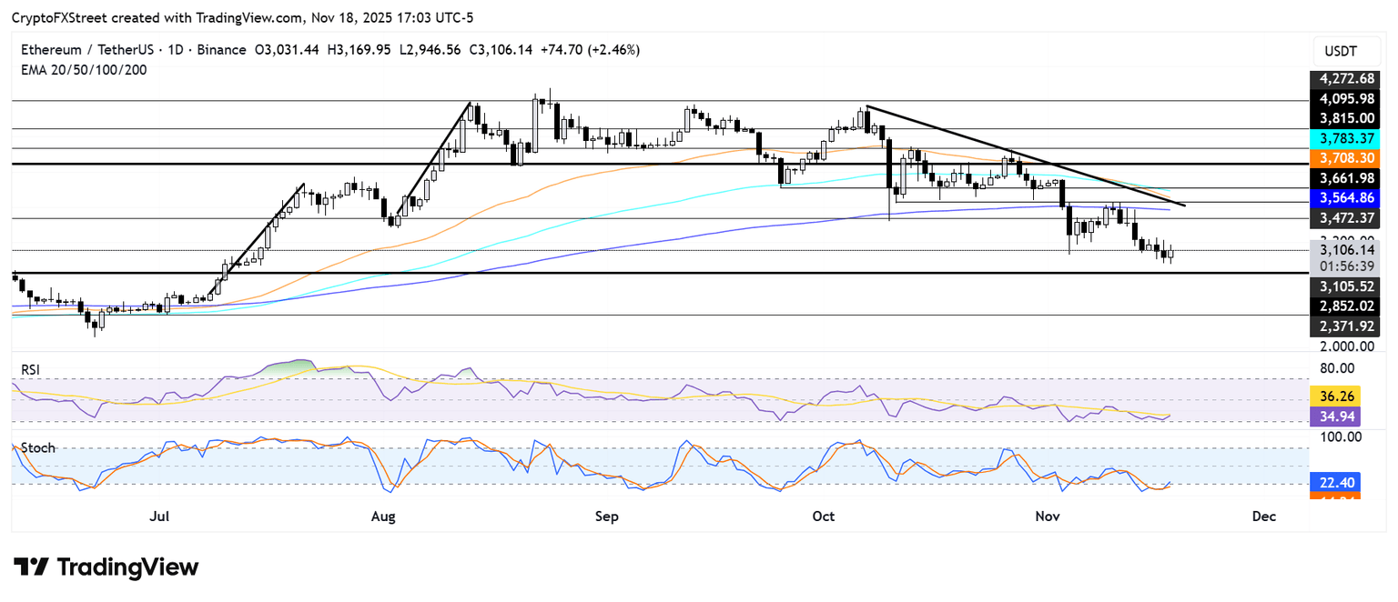 以太坊价格在略低于 2950 美元的低点后,正试图守住 3100 美元附近的支撑位。如果多头守住这一水平,以太坊价格可能会上涨并测试 3470 美元附近的阻力位。
