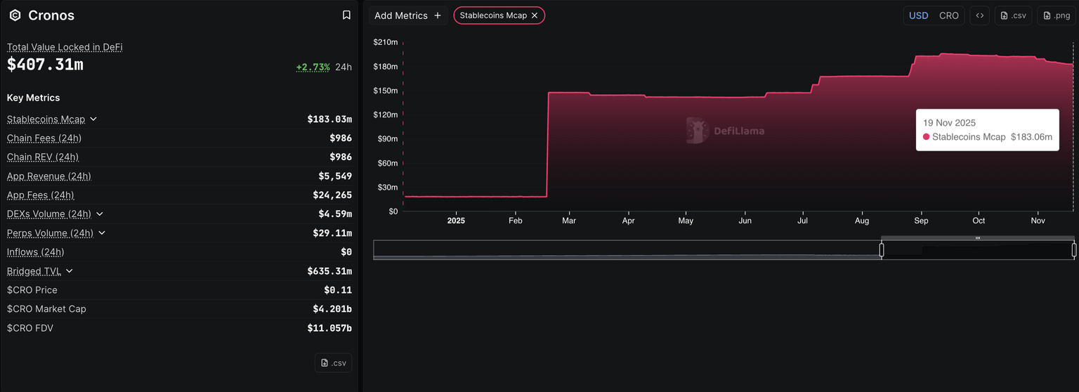 随着零售需求的增长,Cronos 的链上应用也在加速,DeFiLlama 的数据显示,Cronos 的总锁定价值 (TVL) 增长了 2.73%,达到 4.0731 亿美元。数字资产流入 Cronos 反映了链上用户信心的增强,同时,该稳定币的市值也保持在 1.83 亿美元以上,高于 1 月 1 日的 1839 万美元,表明其市场前景强劲。流动性.