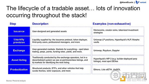想探索加密资产的新颖应用方式?请关注链上生态。这里正是创新试验的温床。资产生命周期的每个环节——发行、流动性提供、交易、上架和产品化——在区块链上皆无需许可且开放,而传统金融中每一步都设有准入壁垒。这样的设定极大拓展了资产创造与利用的设计空间。此外,多类链上协议已逐步成熟为基本面稳健的商业实体。去中心化交易所、借贷平台、代币启动板及永续合约交易所均展现出显著的产品市场匹配度。
