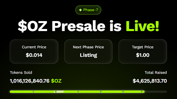 Ozak AI 的预售阶段使其能够以 Solana(如今已是市值数十亿美元的资产)无法比拟的速度吸引早期流动性。寻求最高投资回报率的投资者自然而然地被 Ozak AI 吸引,因为该代币较低的市值和快速的普及曲线能够持续推高价格,而不会像 Solana 等市值较大的山寨币那样面临巨大的阻力。
