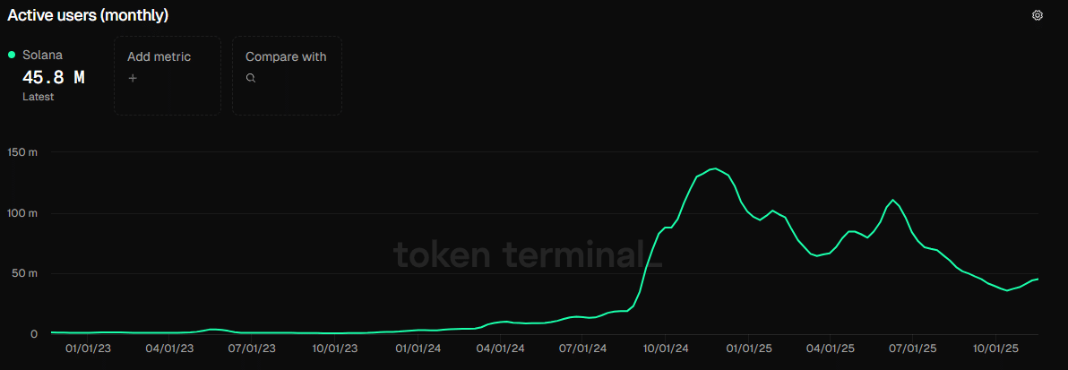 此外,Solana 的月活跃地址数攀升至 4580 万,较上月增长 21%。这一反弹巩固了网络的持续使用,为交易者提供了抵御机构抛售的力量。