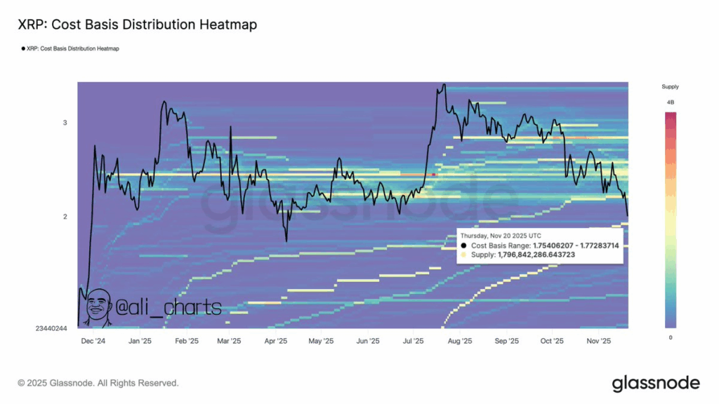 Martinez 在最近的一篇 X 帖子中表示,1.75 美元是 XRP 的一个关键支撑位,因为投资者在该价位已经买入了 18 亿枚瑞波币。