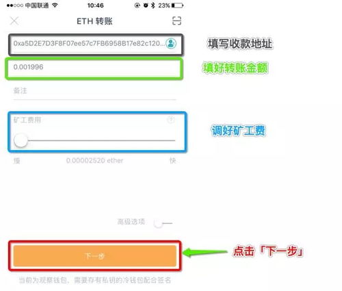 2. 发送加密货币:在冷钱包软件中,输入接收方的公钥、发送金额和交易费用,确认无误后,使用私钥签名交易,并发送交易。