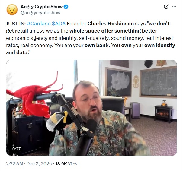 Cardano 的创始人还强调,只有当加密货币能够明显增强散户用户的财务自主权时,他们才会接受加密货币。