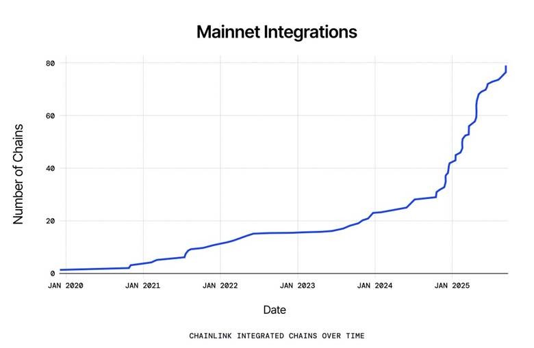更多的区块链已经出现拥抱 Chainlink作为他们的预言机基础设施。最新数据显示,涉及 Chainlink 的主网集成数量近期进入了抛物线式增长阶段。