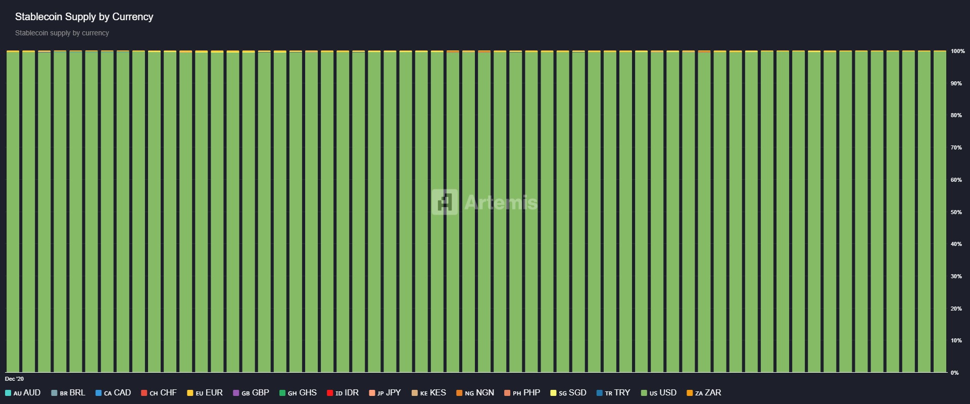 截至撰稿时,以美元为基础的稳定币包括Tether 的 USDT和Circle 的 USDC集体命令超过 3030 亿美元的市场供应量,占 99.7%。