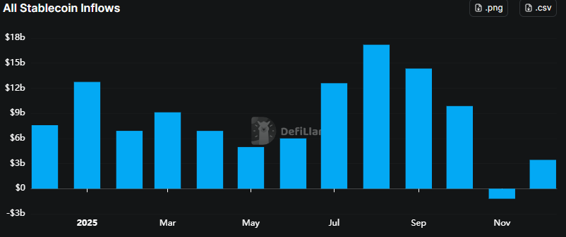 7月至9月期间,稳定币经历了月度流入量100亿至180亿美元的资金流入凸显了监管政策的明朗化加速了相关产品的采用。此外,11月份的市场暴跌导致资金流入转为负值;12月份又恢复了积极的增长势头。