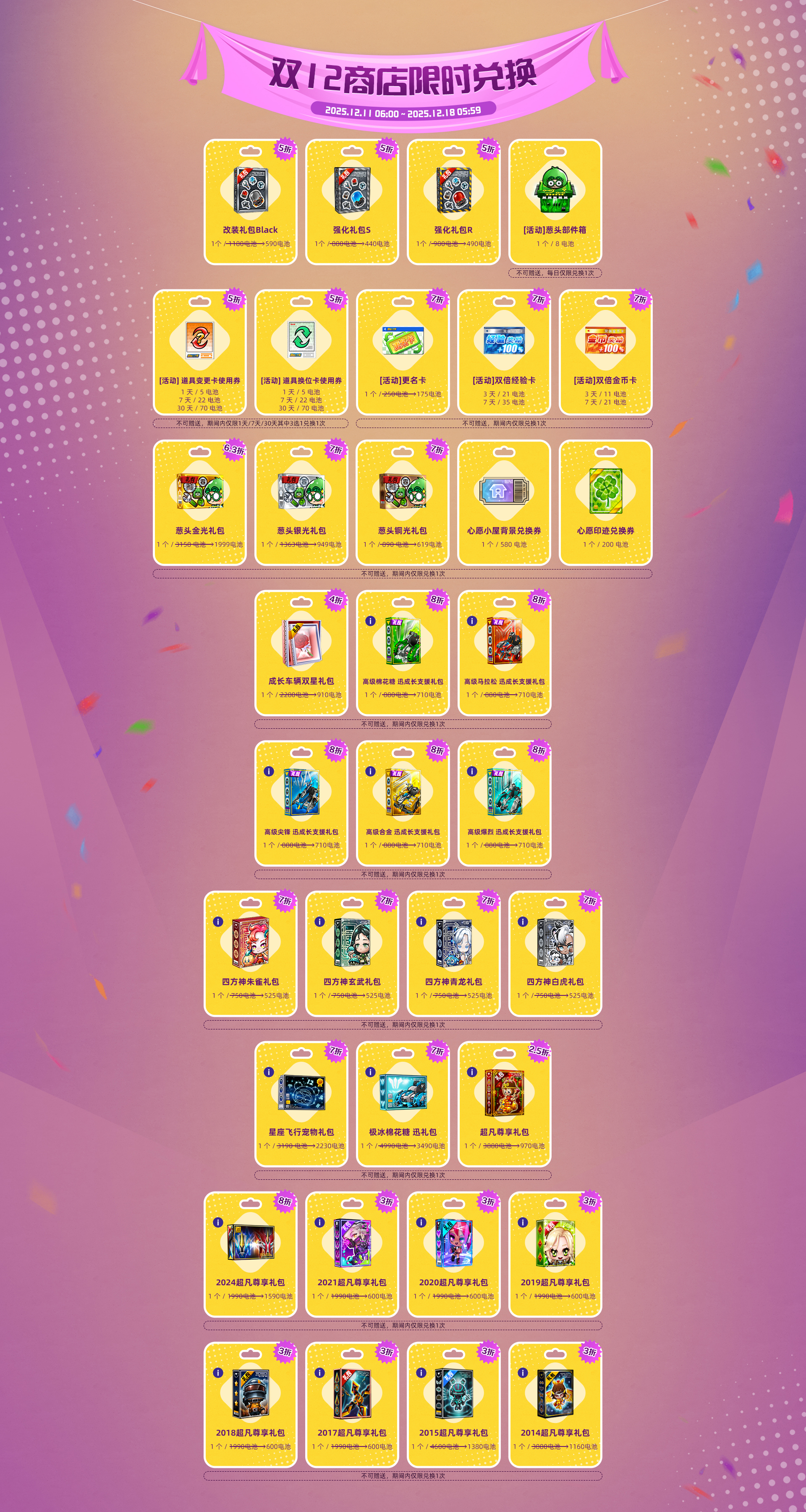 本次更新后,[双12商店]限时开启,详细优惠折扣可见下图~